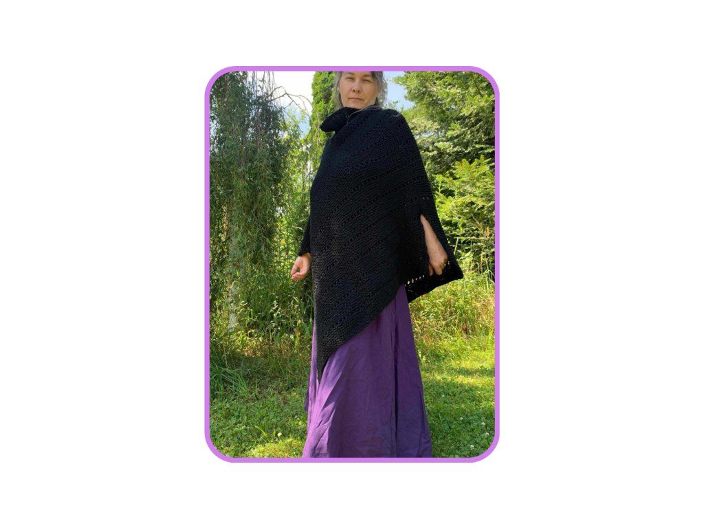 Ručně pletené vlněné pončo - 100 % merino.